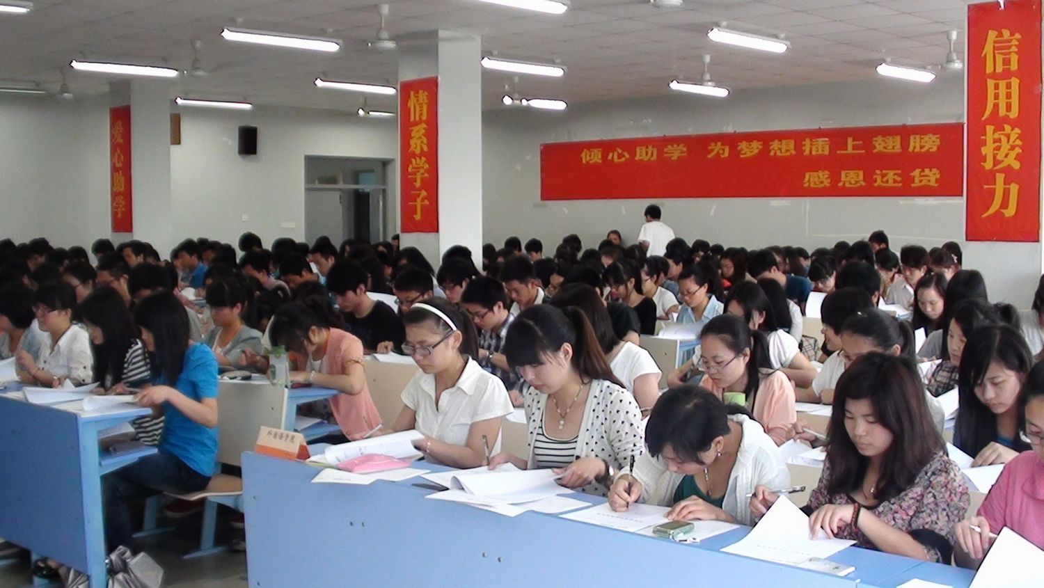 当天中午,该行沈经理等一行5人,学生处、各学院负责助学工作的老师及申请贷款学生共300多人共同参与了签订会。签订会现场,学生处有关负责老师给同学们认真讲解了国家助学贷款合同签订时的有关注意事项,并希望同学们怀着一颗感恩的心,珍惜机会,努力学习,遵守诚信,认真履行合同承诺,按时还款。中国工商银行东门支行沈经理也向同学们详细讲解了国家助学贷款合同、借款凭证的签订流程。各学院负责助学工作的老师在一旁耐心指导、监督。经过一个多小时的紧张工作,本次贷款借款合同签订工作圆满结束。