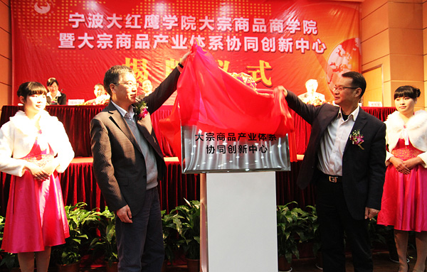 11月29日下午,我校大宗商品商学院暨大宗商品产业体系协同创新中心揭牌仪式在信息大楼报告厅隆重举行,宁波市委书记王辉忠发来贺信,宁波市政府副市长张明华、副秘书长张乐鸣,市教育局局长沈剑光,西安交通大学经济与金融学院院长冯根福,北京长城企业战略研究所副所长武文生,宁波大红鹰教育集团董事长徐芳权,中国工程院院士、校长卢秉恒,校党委书记孙惠敏等领导和嘉宾出席仪式并在主席台就座,出席仪式的还有大宗商品产业体系协同创新中心和大宗商品产学研战略联盟成员单位领导、国内大宗商品知名企业代表,以及在甬高校领导。