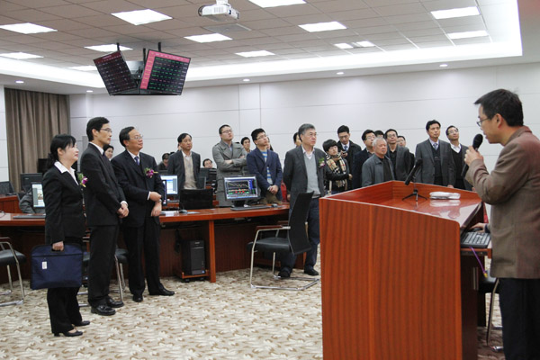 仪式结束后,张明华副市长等领导和嘉宾在卢秉恒校长、孙惠敏书记等陪同下一起参观了我校大宗商品实验中心。该中心包括大宗商品交易实验室、大宗商品物流实验室、大宗商品金融实验室、大宗商品地理信息中心,总投入近2000万。在观看了讲解员现场演示和解说后,张明华副市长等领导和嘉宾对大宗商品实验中心给予了充分肯定和高度赞赏。