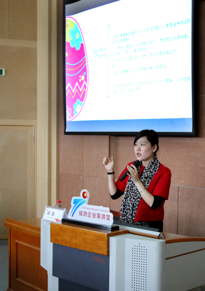 4月11日下午,“成功企业家讲堂”第十八讲在阶梯教室203继续开讲,宁波市拉拉企业管理咨询有限公司总经理邱琮做客我校“成功企业家讲堂”,以“国际化背景下的英语创业”为主题,与我校师生分享创业心得与感悟。