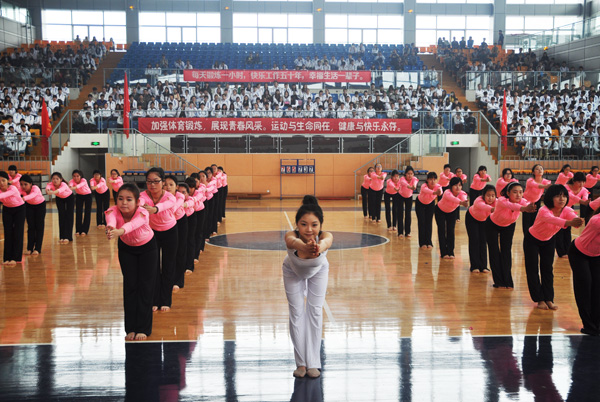 开幕式上,校瑜珈队、排舞队、武术队、健美操队、师生乐队等进行了精彩、生动的节目表演,赢得了现场观众的阵阵掌声。