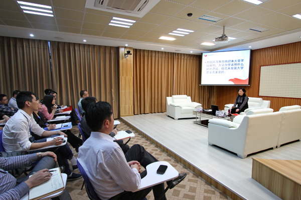 在互动环节,学员们踊跃发言,对大学变革的应对策略进行了热议。孙书记针对问题一一作答,她强调,只有紧跟变革的潮流不断革新发展,才能在新的战略转型期找到和站稳属于自己的发展地位。