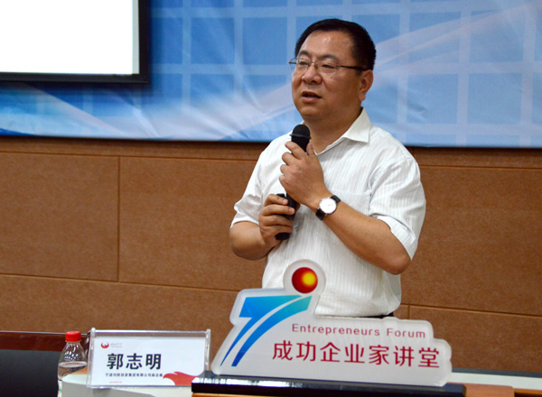 郭总在简单介绍自身情况后,以幽默风趣的语言简洁概括了从年轻时代至今的个人成长经历,讲述了他从一个工厂工程师到人事局的公务员,再到全球最大化学公司的人事经理,最后成为宁波均胜投资集团有限公司副总裁的整个过程。接着,他全面介绍了宁波均胜投资集团有限公司的发展状况及公司经营核心理念。他说,均胜的发展源于经营模式和经营理念的创新,而技术创新是均胜持续发展的根本,正因为不断创新,才让公司在短短十年时间从一个名不经传的小公司迅速扩大发展为一个跨国公司,在汽车部件技术领域成为龙头企业。对于个人学习及职业发展,他强调,在专业学习与职业发展中最重要的是掌握学习方法、开阔视野、培养品德;在勤奋努力的同时,不断创新自己的思路和方法,不断提高综合能力。此外,他还表示,广大同学要系统学习专业理论知识,并在个人职业发展中要充分了解职业生涯发展的多样性,为未来的就业打下基础。