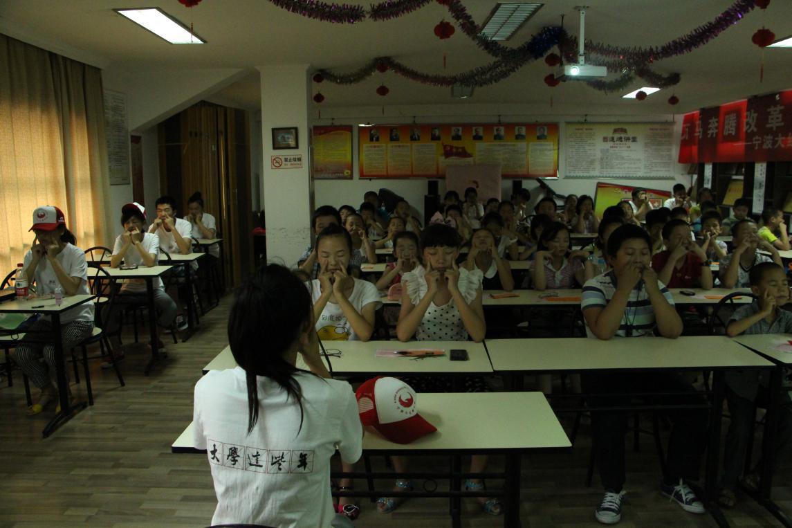 信息学院赴望春街道“追梦”暑期社会实践团队成员与孩子们一起做眼保健操