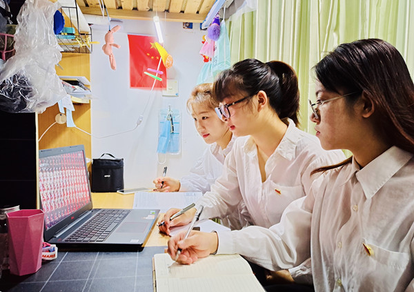 学生党员在寝室观看学习