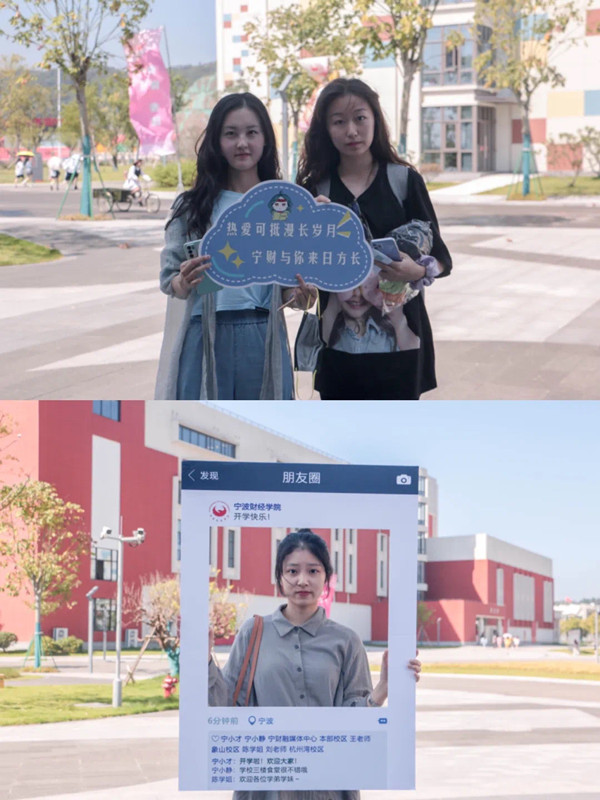 校园里精心设置的“网红”打卡点、学校融媒体平台宣传展台前吸引了不少新生的关注。他们邀上室友同学,留下了自己大学生涯的第一张合影。